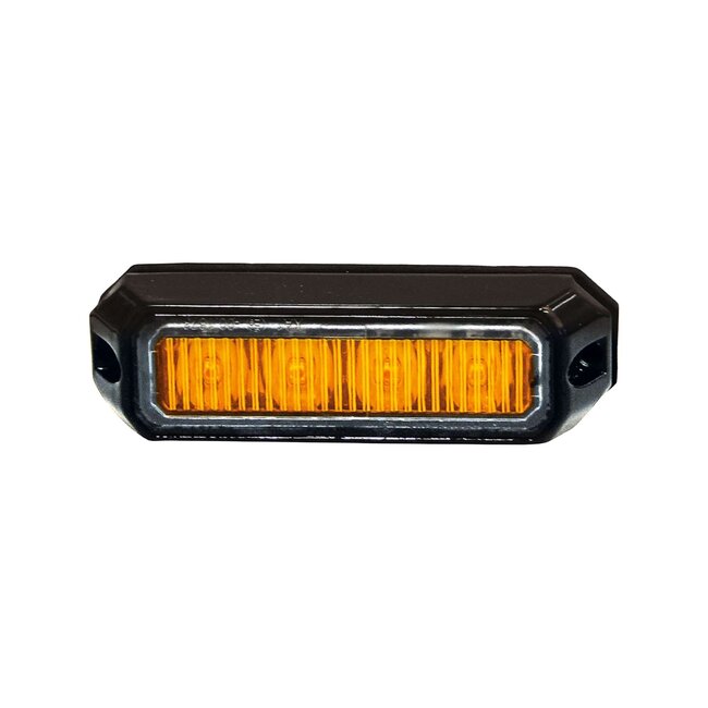 Oranje waarschuwingsknipperlicht met 4 diodes en 18 flitspatronen. Stijlvol ontwerp met een zwart frame.