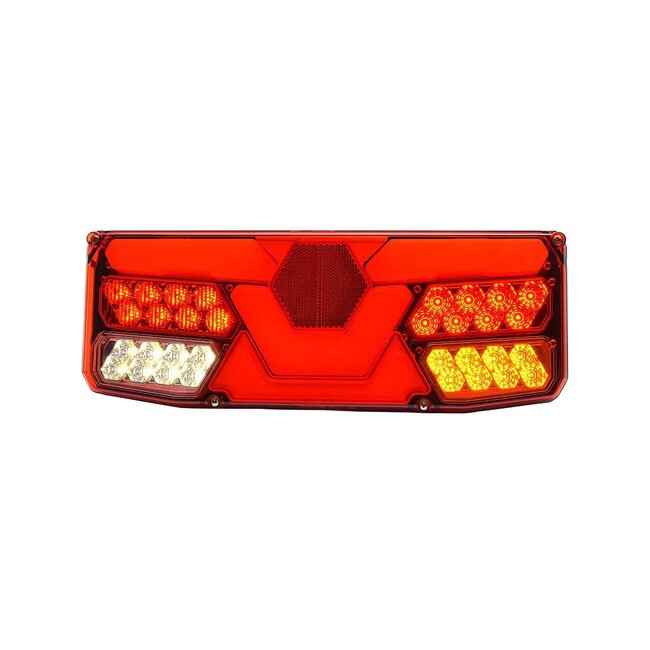 Strands tail light offers five functions in a solid, long-lasting design. It is E-approved and features tail, brake, reverse, fog light, and indicator. The tail light is IP-rated IP68 and built from durable materials to handle the heavy wear a tail light faces. It measures 350 x 81 x 131 mm with 150 mm CC and is suitable for left-side trailer mounting.